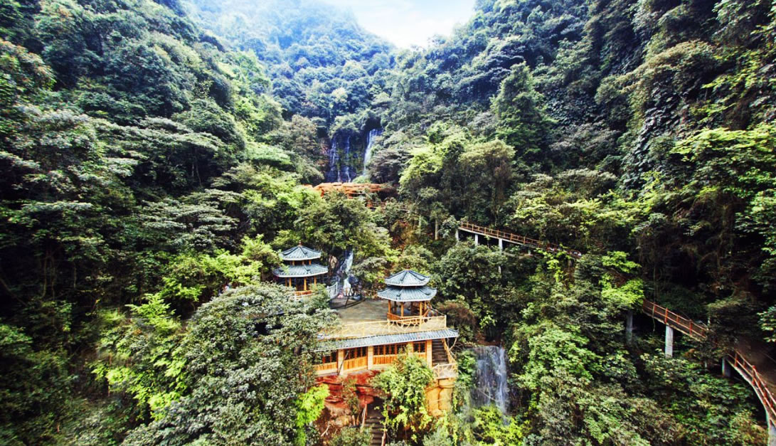 - 規(guī)模:占地9000畝,森林覆蓋率96%,負(fù)氧離子濃度達(dá)2.2萬個(gè)/cm³,是天然氧吧。