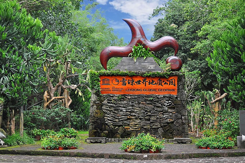 中國雷瓊世界地質公園位于中國南端,地處廣東省湛江市雷州半島(雷)和海南省?谑校ō偅,由湛江園區(qū)、?趫@區(qū)與瓊州海峽組成,面積為3050平方千米。公園地區(qū)多期次的火山噴發(fā)形成的獨特的地理、地質環(huán)境,造就了公園廣闊的玄武巖臺地、豐富的火山地貌以及火山巖海蝕地貌與海積地貌等地質遺跡景觀,也造就了當地獨特的火山文化。公園以?隈R鞍嶺等為代表的第四紀火山帶聞名于世,更有以湖光巖為代表的瑪珥湖堪稱研究全球古氣候、古環(huán)境變化的“天然年鑒”。