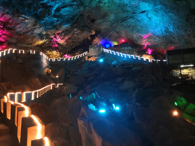 - 黃金溶洞:洞內(nèi)石筍、石柱、石幔如冰雪宮殿,燈光映襯下流光溢彩,適合科考探秘與攝影。洞內(nèi)濕滑,需穿防滑鞋,禁止觸摸鐘乳石。
