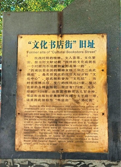 桂林“文化書(shū)店街”舊址紀(jì)念碑。