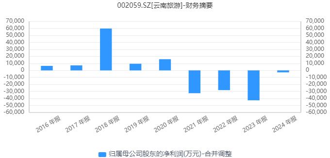 雖然擁有稀缺的旅游資源,但是在業(yè)績上,云南旅游卻沒有將優(yōu)勢轉(zhuǎn)化為利潤。營收方面,公司在2018年達到高點后就快速下滑,這幾年營收規(guī)?s水較嚴重,2024年公司的營收5.57億元,僅相當于2018年營收的18%左右。