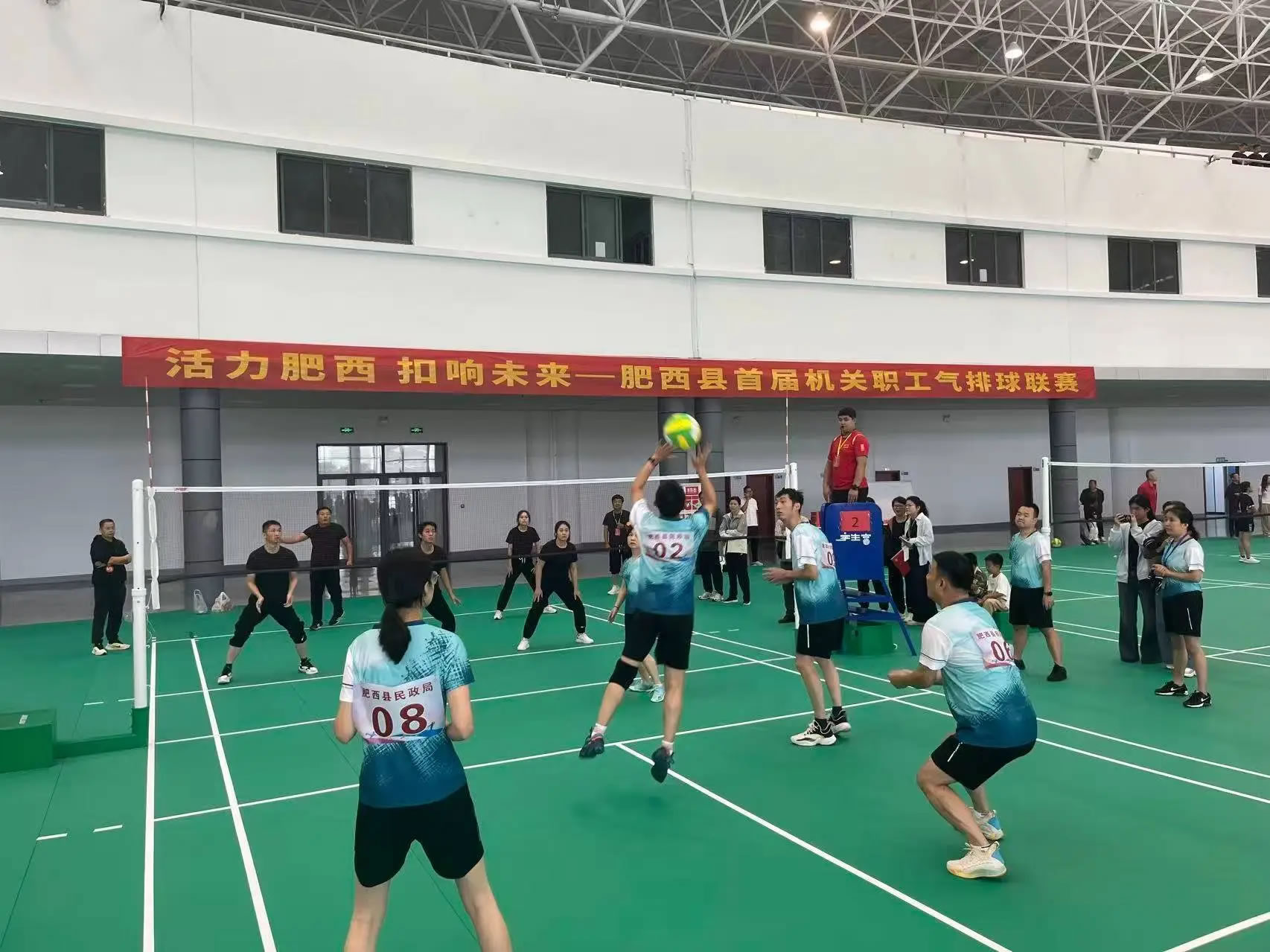 央廣網(wǎng)合肥10月12日消息(記者周然)金秋時(shí)節(jié),活力迸發(fā)。10月12日上午9時(shí),在中國(guó)中部花木城3號(hào)館,人潮涌動(dòng),肥西縣首屆機(jī)關(guān)職工氣排球聯(lián)賽盛大開(kāi)幕!來(lái)自全縣的32支參賽隊(duì)伍,數(shù)百名運(yùn)動(dòng)員齊聚一堂,將在未來(lái)一個(gè)多月內(nèi)點(diǎn)燃拼搏熱血,全力“扣”響精彩,共同演繹一場(chǎng)力與美的體育盛宴。