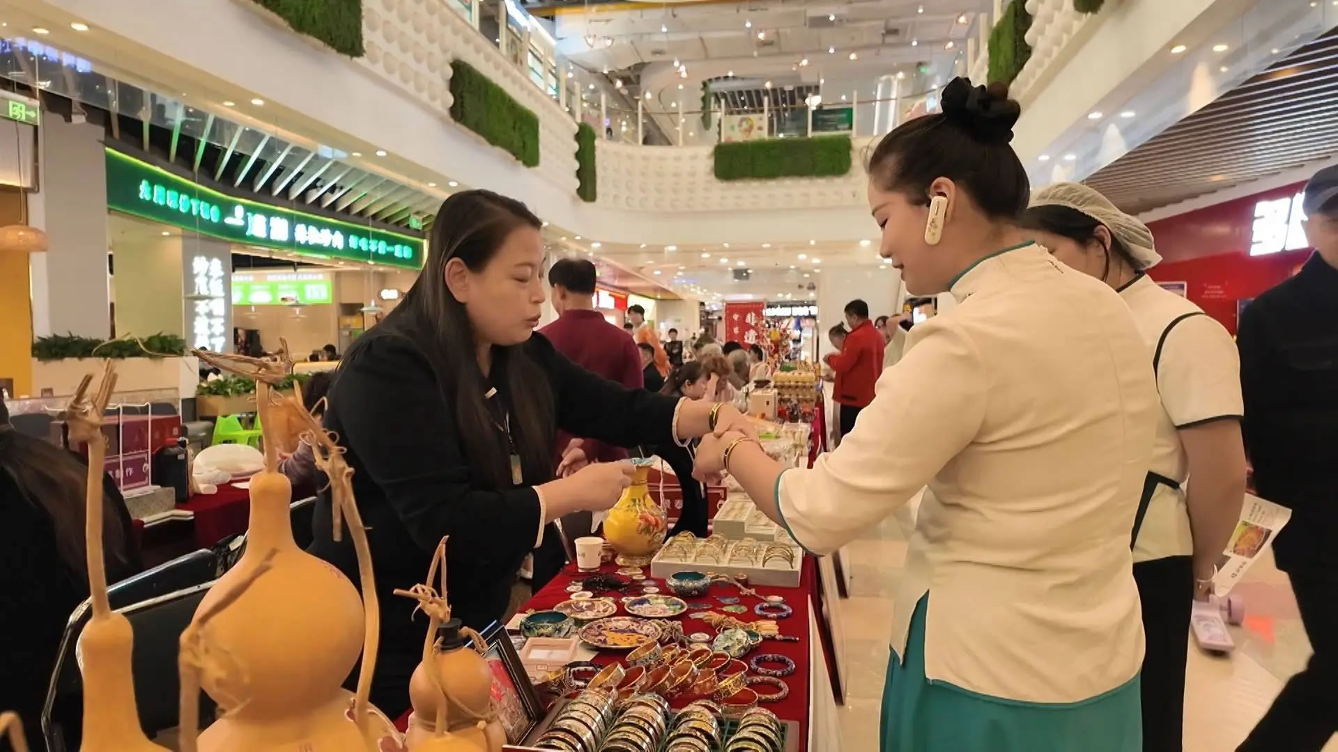 活動當(dāng)天,永旺商場地下一層變身為一處充滿傳統(tǒng)文化韻味的開放式“非遺市集”。雕刻鼻煙壺、景泰藍、面塑以及尹祥記純手工糕點等22種非遺齊聚一堂。市民們穿梭于市集之間,不僅可以欣賞精妙的非遺技藝,還能現(xiàn)場選購,沉浸式感受非物質(zhì)文化遺產(chǎn)的獨特魅力。