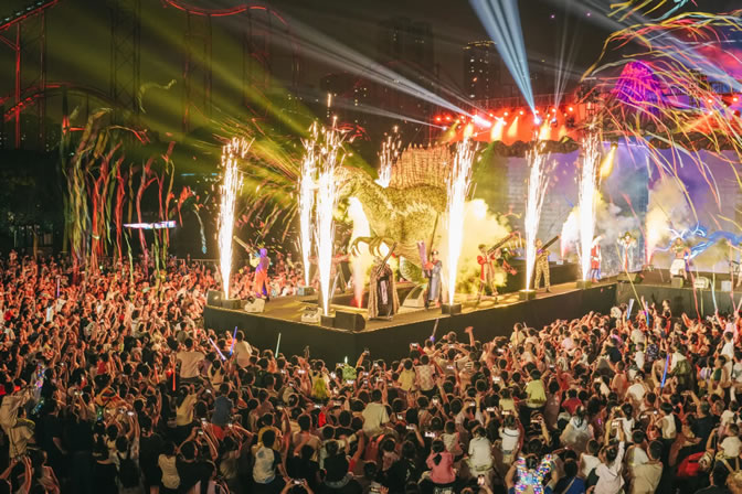 不僅有奇幻新世界,更有奇趣新體驗。劇場里,《復(fù)活恐龍D計劃》魔法秀展現(xiàn)恐龍主題趣味魔法,《魯樂回家》音樂劇傳遞人與自然之間的溫暖,《恐龍島危機(jī)》特技表演詮釋冒險旅途的驚險刺激;項目前,“百龍軍團(tuán)”“角角見面會”“邂逅侏羅紀(jì)”等仿真恐龍的快閃互動實現(xiàn)了游客“與龍同行”的震撼奇觀;巡游中,“怪獸天團(tuán)”“逗趣南瓜團(tuán)”“鬼馬精靈”花車巡游從日落到夜幕,一路載歌載舞,在全新“奇幻D秀”結(jié)合電音派對點(diǎn)亮夜空與舞臺,為大小游客留下難忘的假日歡樂。