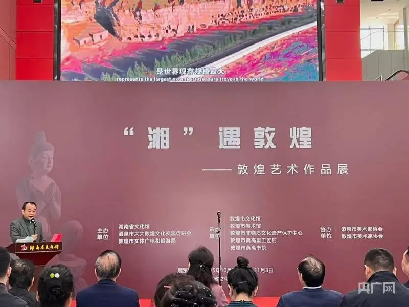 此次展覽,不僅是兩地踐行文化自信、推動(dòng)文化交流的重要舉措,更在于通過(guò)展覽,讓敦煌文化為瀟湘大地增添一抹濃郁的藝術(shù)色彩,也讓荊湘文化為戈壁綠洲帶來(lái)靈秀的人文氣息,真正意義上實(shí)現(xiàn)文化資源的共享互鑒,為兩地文化發(fā)展注入新動(dòng)能。