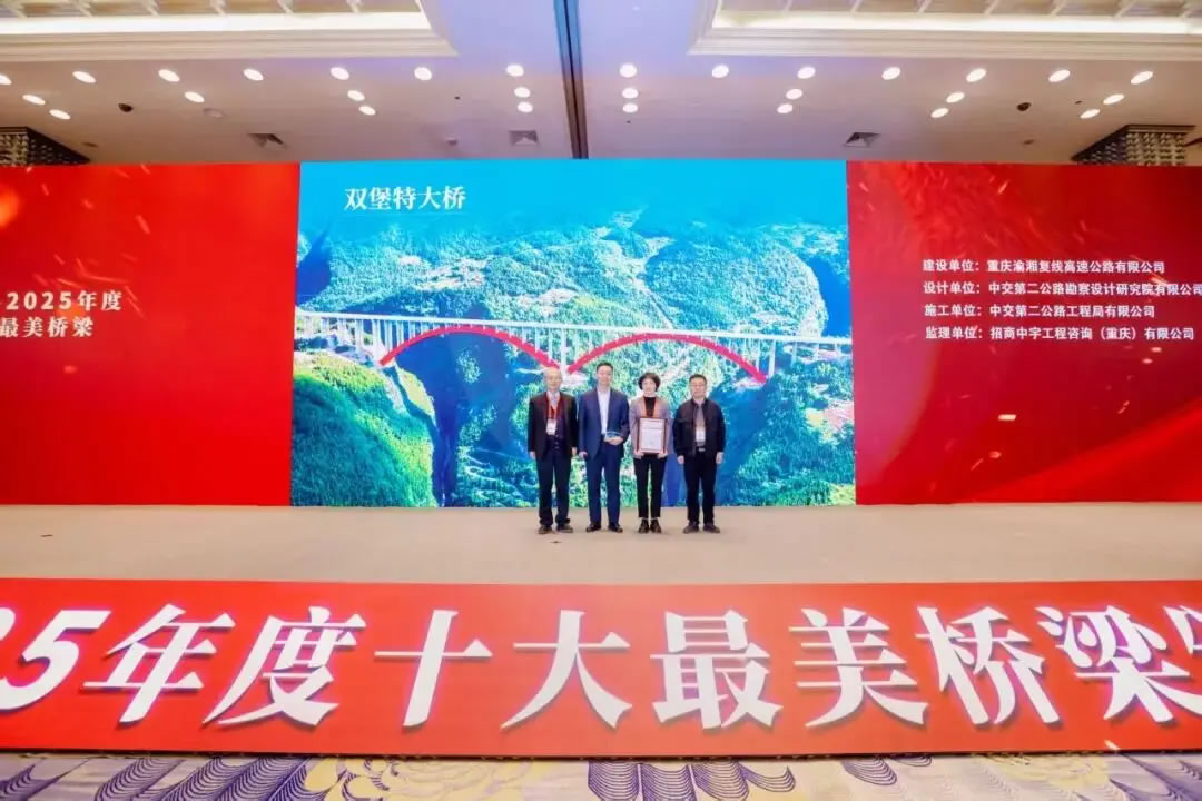 近日,由《橋梁》雜志社組織舉辦的“2020-2025年度十大最美橋梁”終評(píng)會(huì)議及頒獎(jiǎng)晚會(huì)舉行,其中,渝湘復(fù)線高速公路雙堡特大橋獲評(píng)“2020-2025年度十大最美橋梁”。